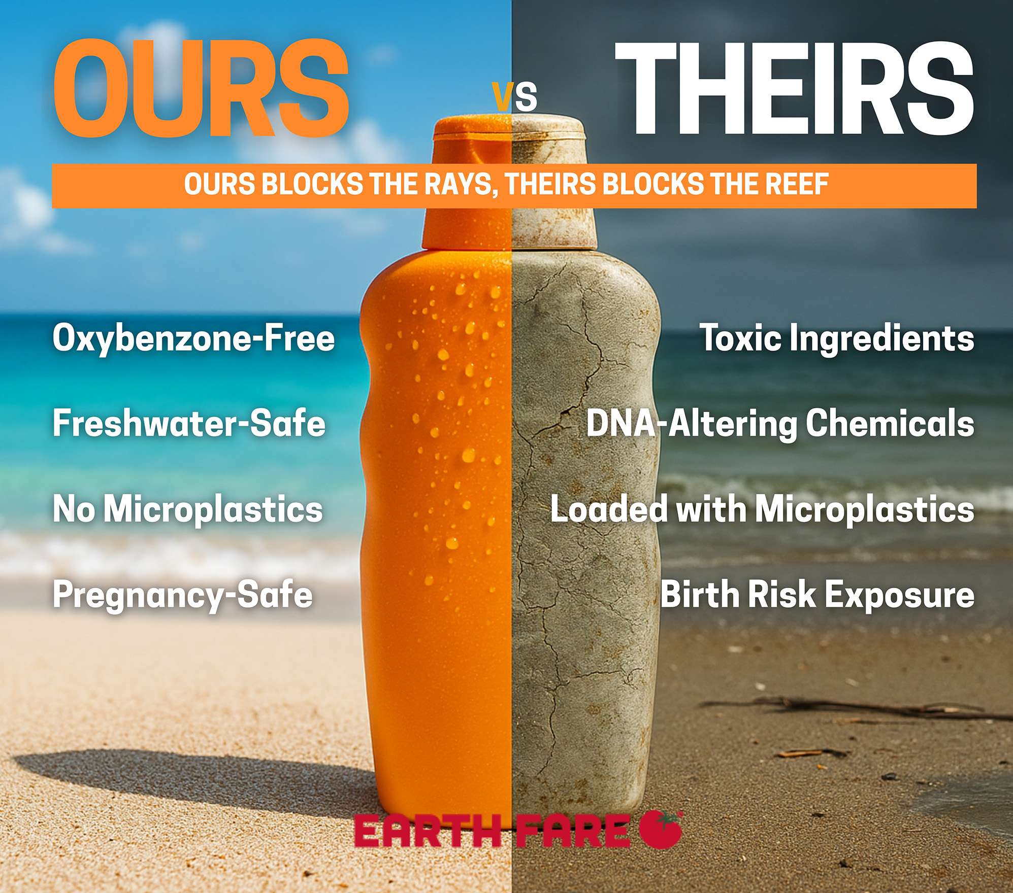 The Haereticus Environmental Laboratory (HEL) List makes shopping for sunscreens simple, giving us a list of ingredients to steer clear of. This list advises people to avoid products with oxybenzone and octinoxate, microplastics (spheres or beads), nanoparticles, and a variety of other chemicals. While some conventional brands may label their products as “reef safe”, this is often seen as greenwashing because the term is not regulated. To take care of yourself and the environment, look for labels that have the certified ‘Protect Land + Sea Certification Seal’ (PL+S), which guarantees the product is completely free of harmful ingredients.The National Park Service states that an estimated 4,000 to 6,000 tons of sunscreen washes off into oceans worldwide every year. At Earth Fare, we care about being fare. Help us help you and pick up Derma-E, Badger, or Think brand sunscreen for your next summer vacation to help keep the Earth’s waters healthy, clean, and vacation-ready.Nowwww you can dive in!